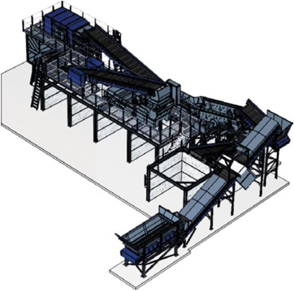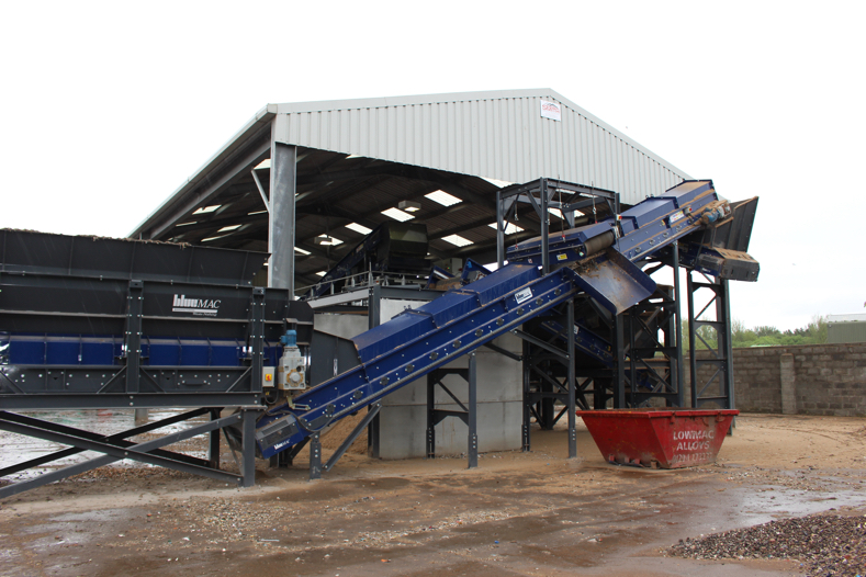 After going through a competitive tender process, Lowmac Waste & Recycling invested in an extremely versatile, tailor-made waste recycling plant. The plant currently processes a wide variety of incoming waste streams at around 1000 tonnes per week at a rate of between 25 and 30 tonnes per hour and is more than capable of greater volumes should future needs arise. The new BlueMAC waste recovery system, designed and built to combine a series of compatible processors and conveyor arrays in a convenient and compact under-cover configuration, can treat a broad range of mixedwaste and, consequently, can provide material remediation to a very high quality. Clean fines, secondary aggregates, biomass, animal bedding, ferrous and non-ferrous metals, amongst other saleable materials, are all being produced from this specially designed, multi-tasking waste recovery plant.