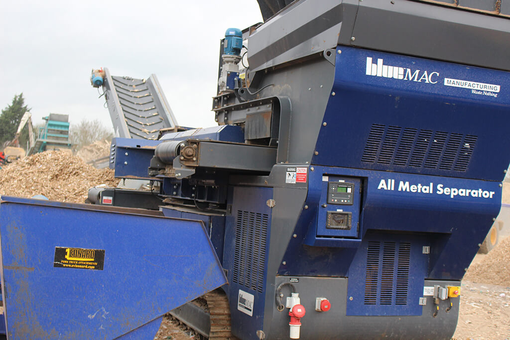 When looking for a machine to help with separating ferrous and non-ferrous material from the wood, Waring Waste turned to machinery distributor Blue Central who provided a tracked BlueMAC All Metal Separator (AMS). The AMS not only allows the company to save money as they no longer need to dispose of the low grade wood waste, but also allows for the extraction of ferrous and non-ferrous material - offering two additional revenue streams for the company. The machine currently processes around 240 tonnes of wood waste per day; meaning an initial rate of between 25-30 tonnes per hour. As well as processing wood, the All Metal Separator also extracts ferrous and non-ferrous material from the waste and is currently providing around 1 tonne of scrap metal and 1 tonne of aluminum per week.