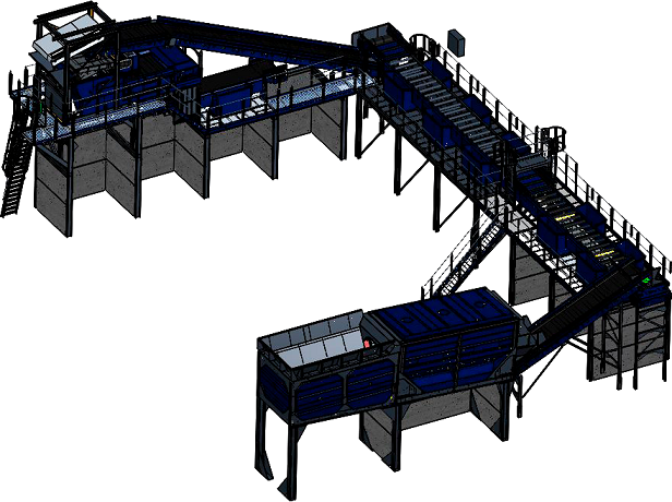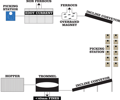 After going through a competitive tender process Falkirk Council have invested signifcantly on new equipment to sort the CDR material. The main part of this investment was made in a BlueMAC recycling facility, purchased through Blue Scotland and incorporating a 6 bay twin side picking line, over-band magnet and eddy current separators, as well as a number of conveyors to move the material.